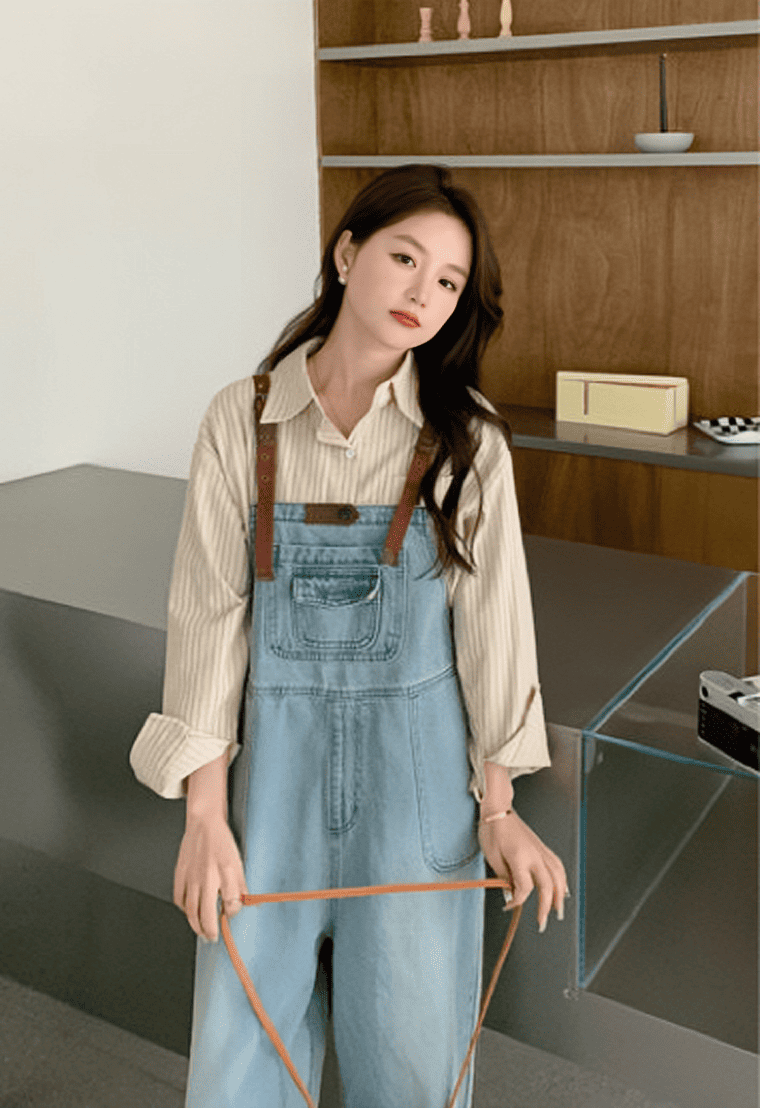 爆款日系減齡設計感牛仔背帶連 ...