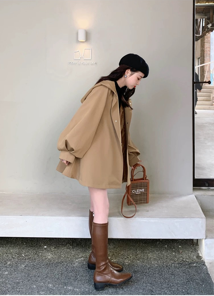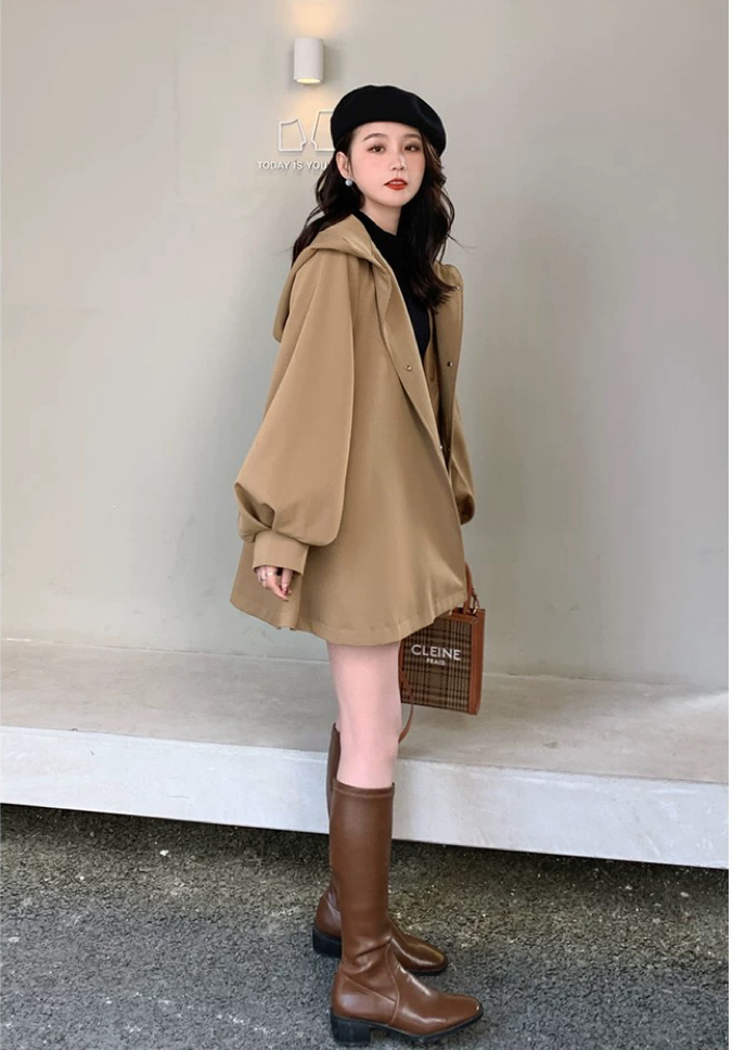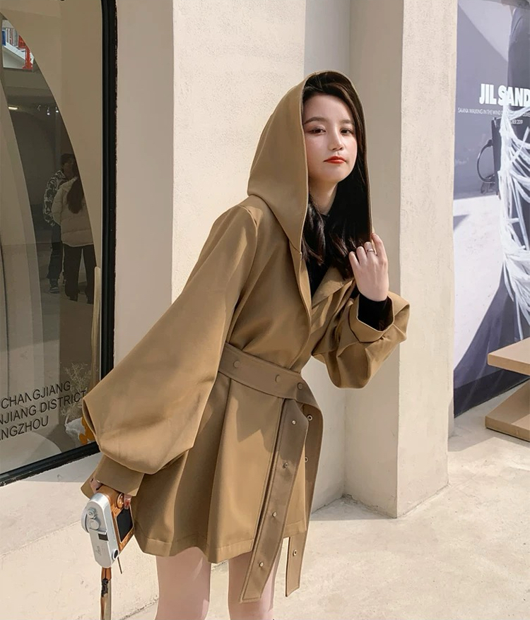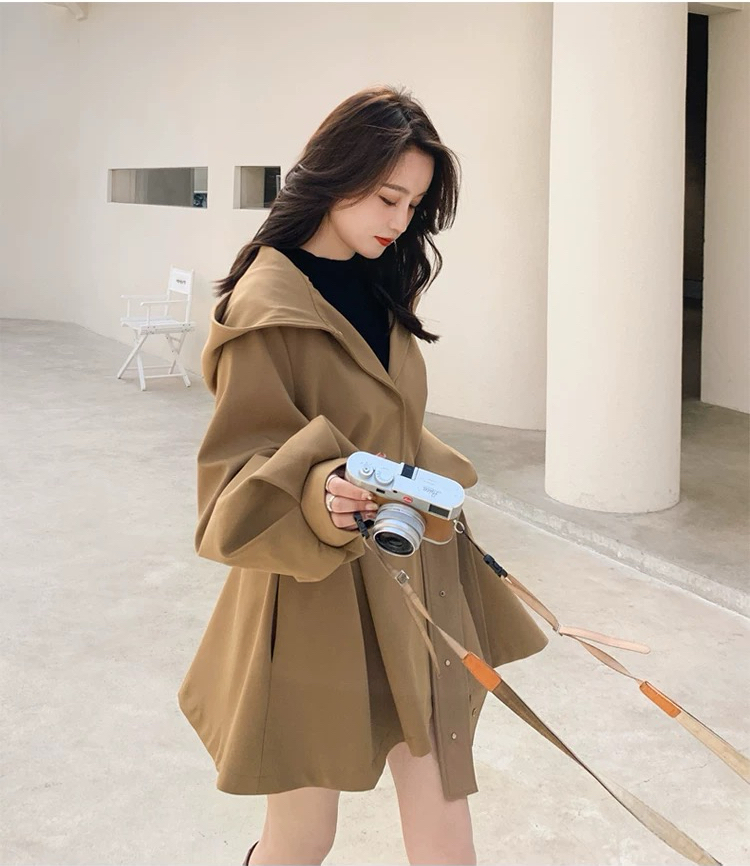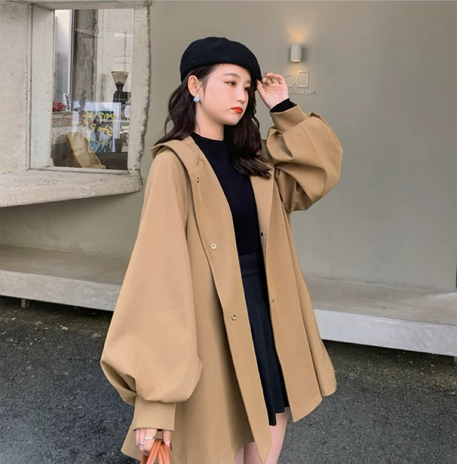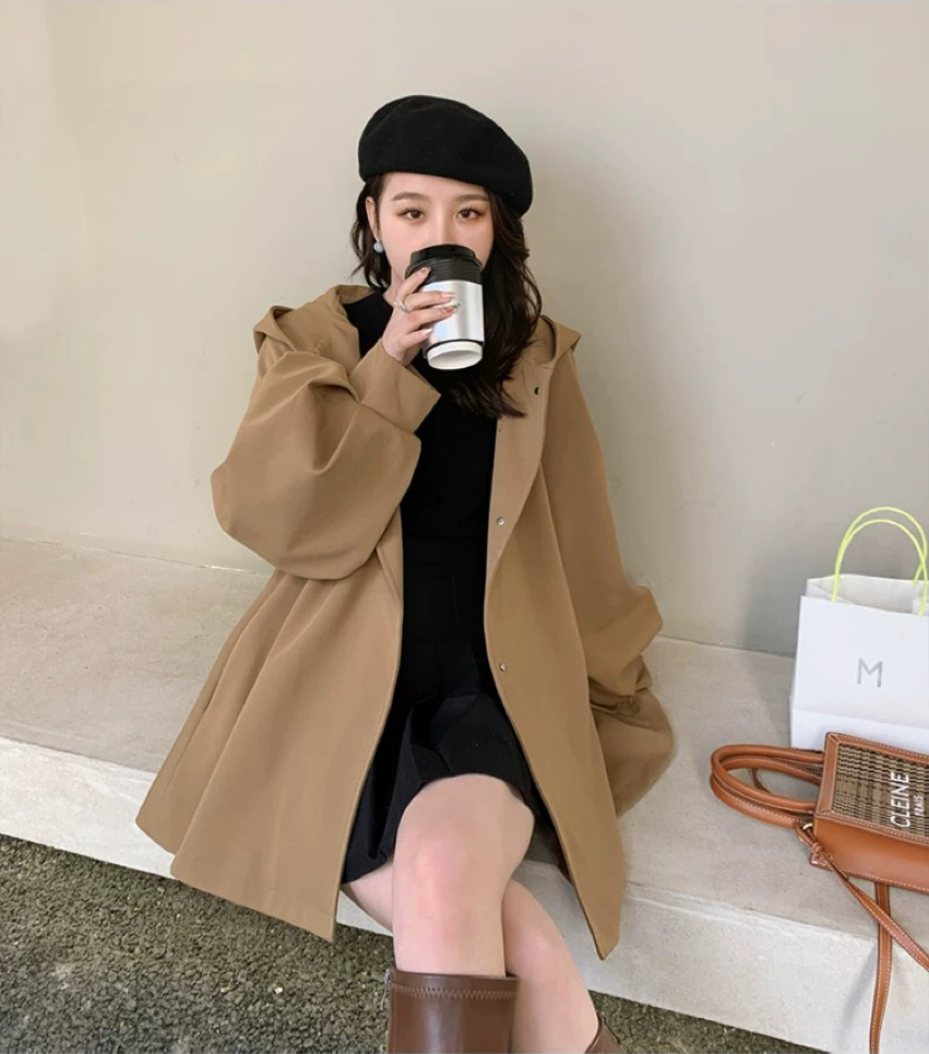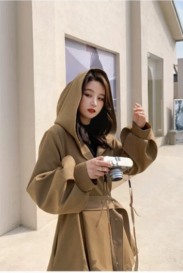 2024早秋卡其斗篷寬鬆連帽風衣 ...