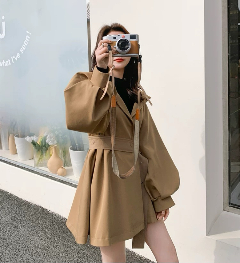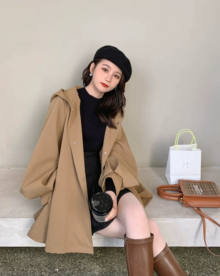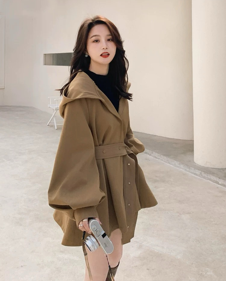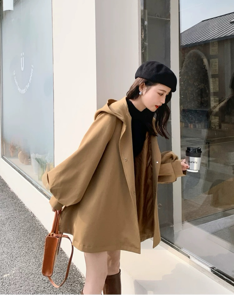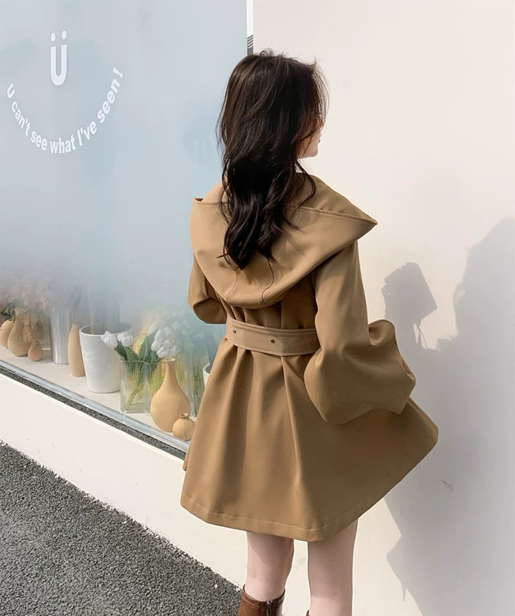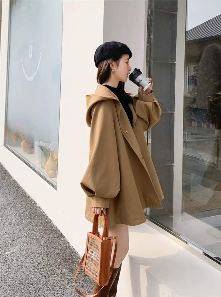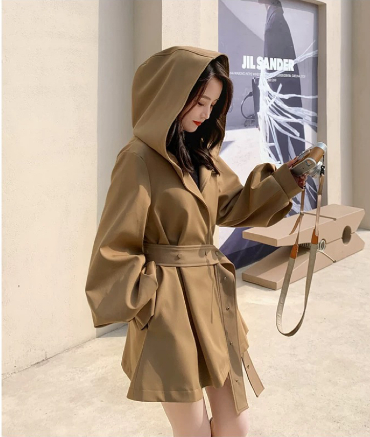 2024早秋卡其斗篷寬鬆連帽風衣 ...