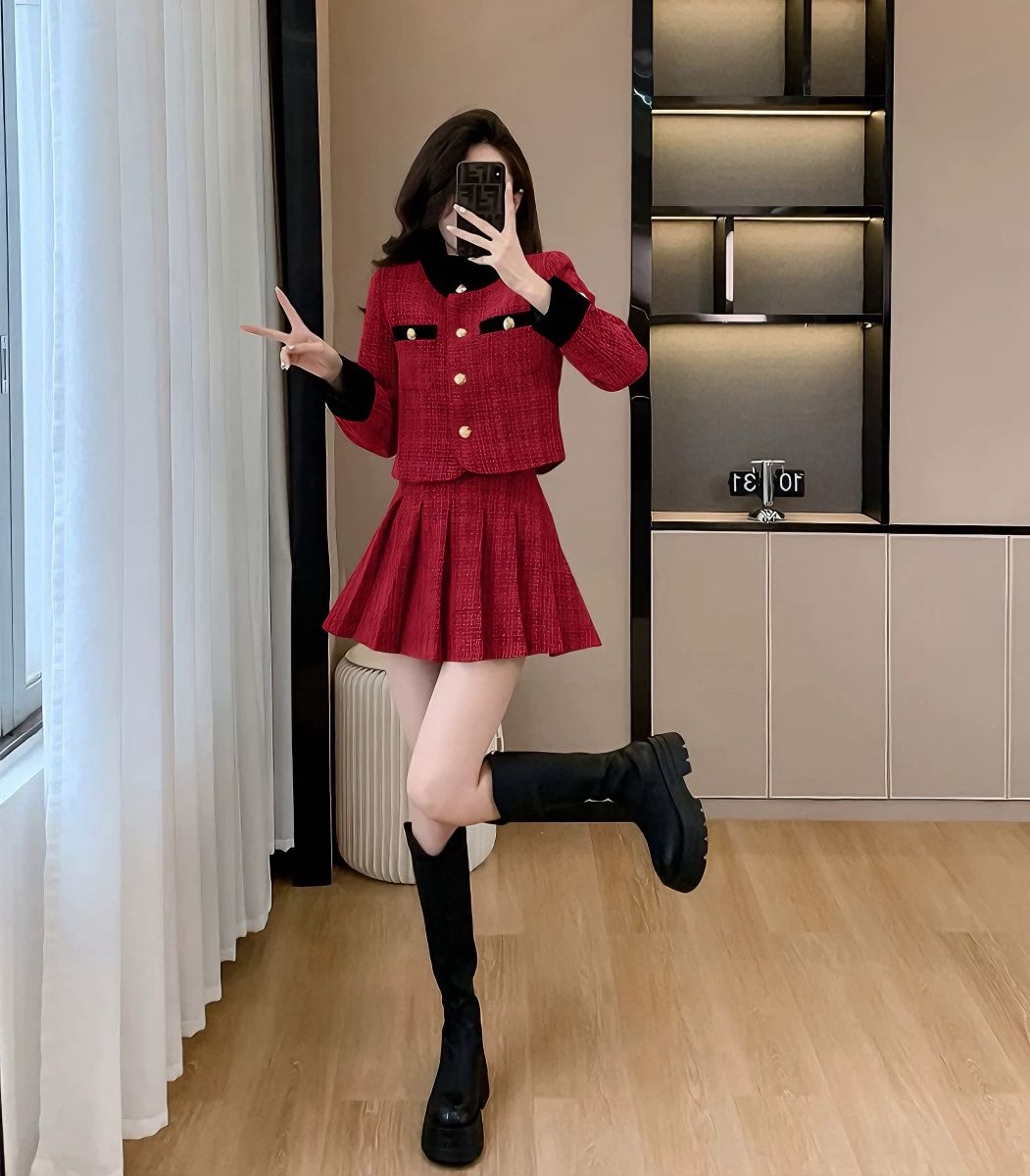 聖誕新年夾棉小香風百摺裙兩件 ...