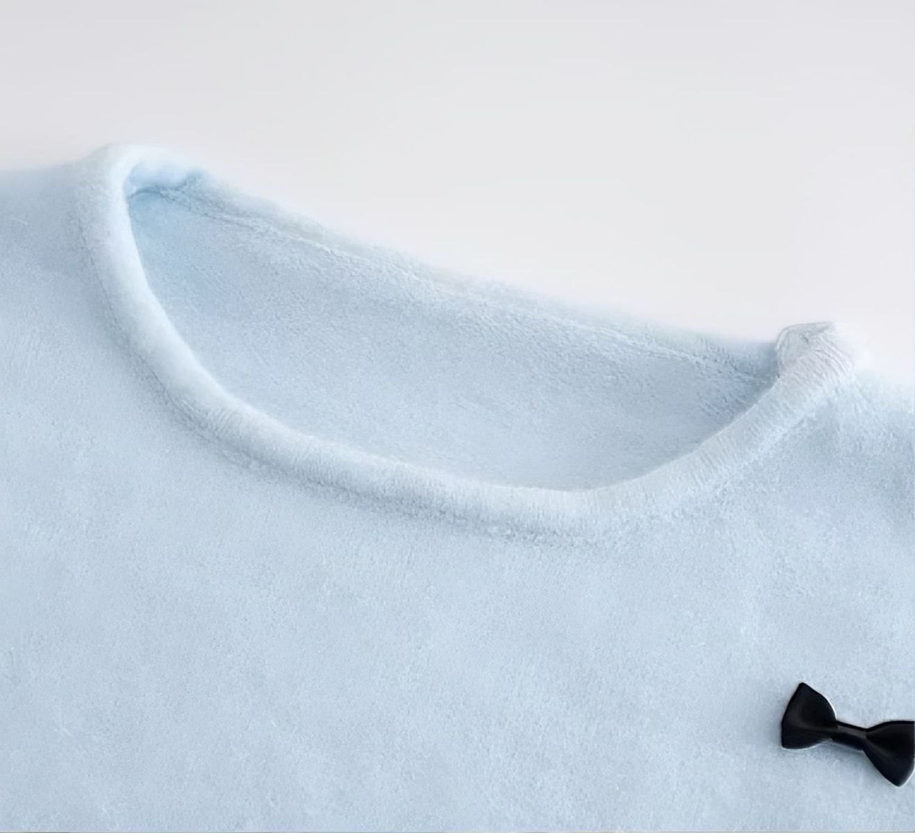 秋冬藍色蝴蝶結拼接蕾絲針織上 ...