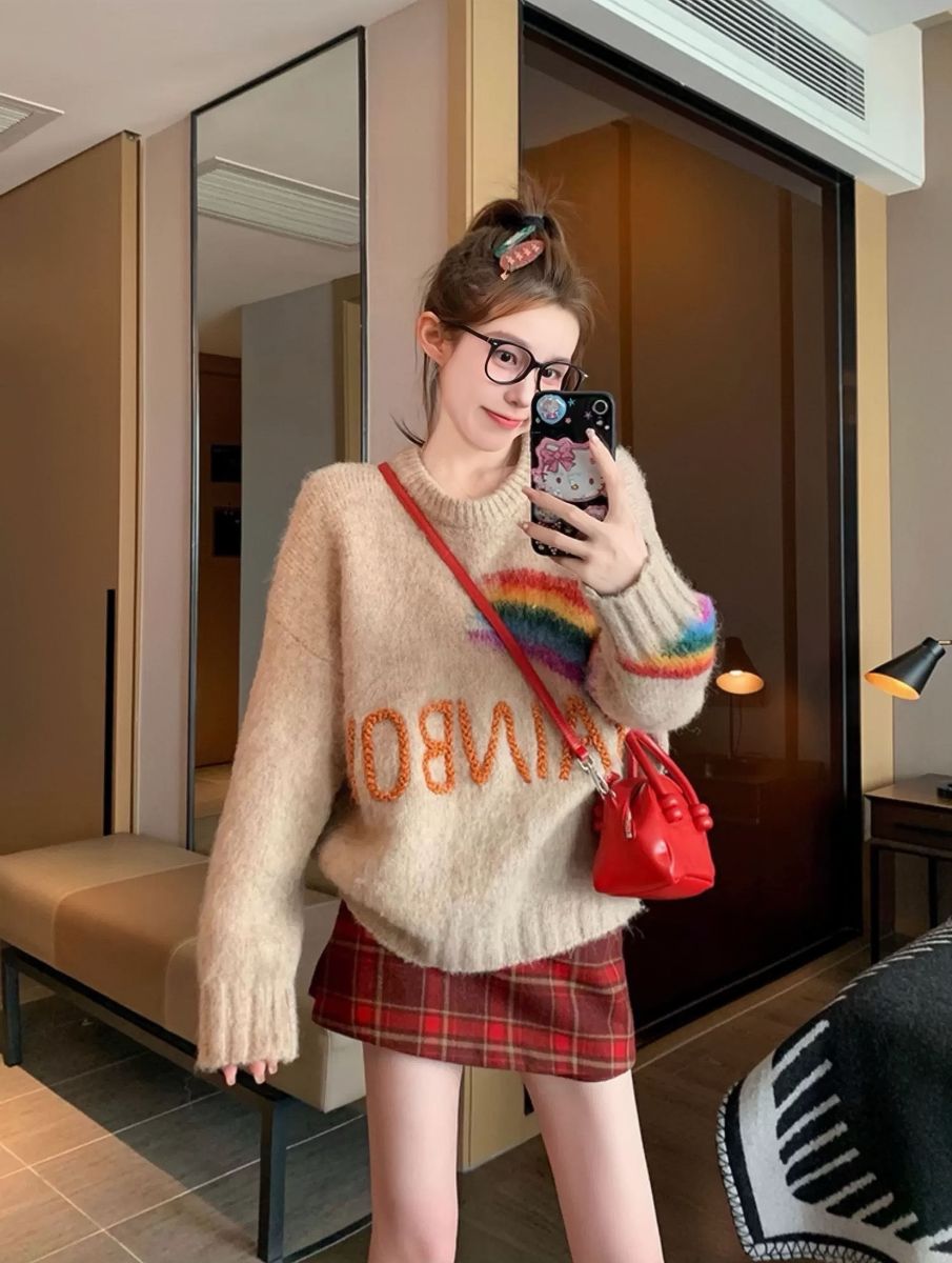 新款冬季加厚圓領套頭彩虹寬鬆 ...